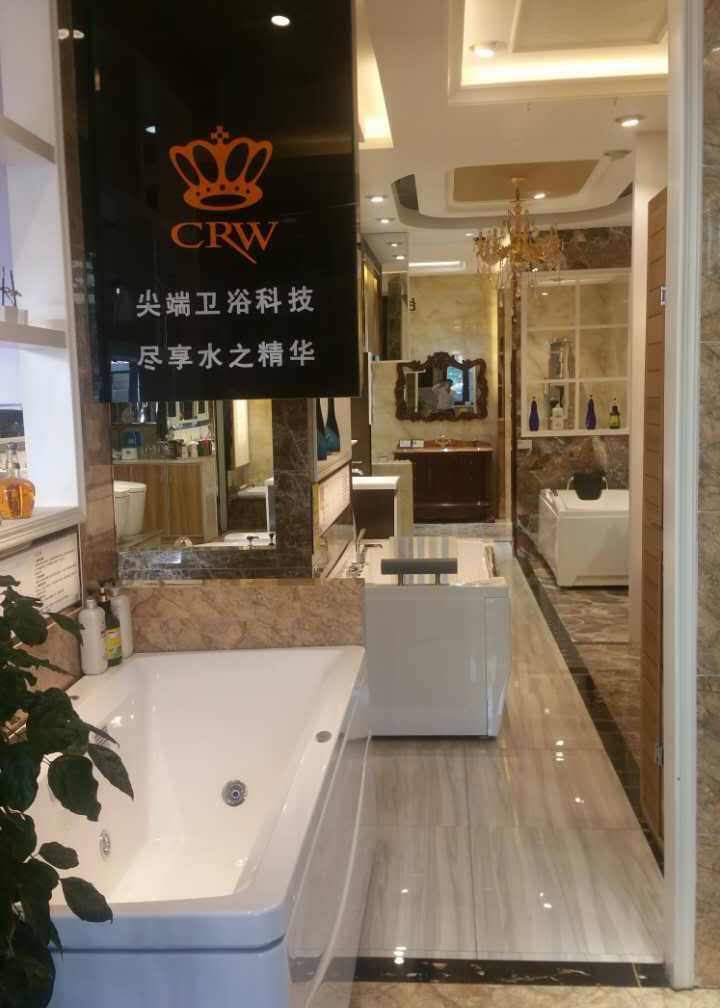 现在我代理了英皇卫浴、帝朗卫浴、精度淋浴房、唯可浴室柜、泰陶卫浴。以唯可为例,它主要是做浴室柜,是高品质奢华家居。