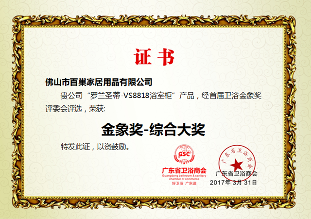 唯可卫浴倾力打造的“罗兰圣蒂-VS8818浴室柜”,具有质感温润、造型高贵的优良特性,在行业数百件入围卫浴产品中力压群雄,一举夺得首届中国卫浴“ 金象奖·综合大奖”的殊荣。
