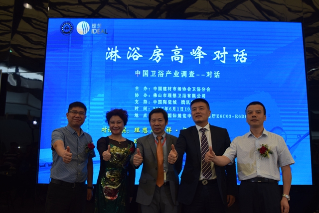上海厨卫展作为中国乃至亚洲范围内规模最大、最具影响力的厨卫盛会之一,被誉为中国的“卫浴奥斯卡”。2017年6月1日上午10:00由中国建材市场协会卫浴分会主办,佛山市理想卫浴有限公司协办,中国陶瓷城、腾讯家居支持的《淋浴房高峰对话》在这届奥斯卡E6C03-E6D03佛山市理想卫浴展厅内隆重开启。中国建材市场协会卫浴分会秘书长刘文贵为嘉宾主持,理想卫浴危五祥先生,福瑞张海锋先生,玫瑰岛董事长肖杉女士,九牧邓小清先生4位嘉宾出席本次高峰对话。