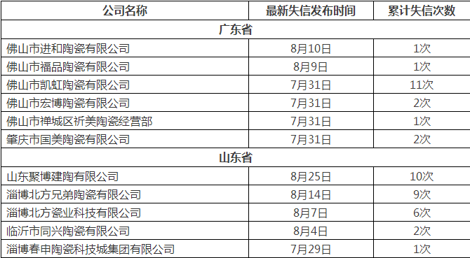 根据最高人民法院及各地法院发布的失信被执行人信息统计,最近30多天内全国各地有40余家陶瓷企业被列入“失信被执行人”名单,也就是俗称的“老赖”。