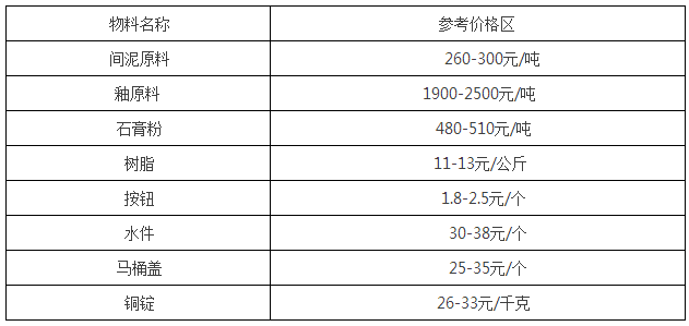 2017年我国马桶行业物料及成本分析
