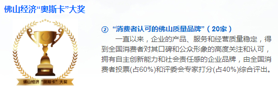 近日,由佛山市质量技术监督局、佛山市工商联指导,佛山传媒集团、佛山市总商会、佛山市企业家联合会主办,佛山日报社承办的第六届“品牌佛山”系列活动“消费者认可的佛山质量品牌”( 20家)拉开帷幕。