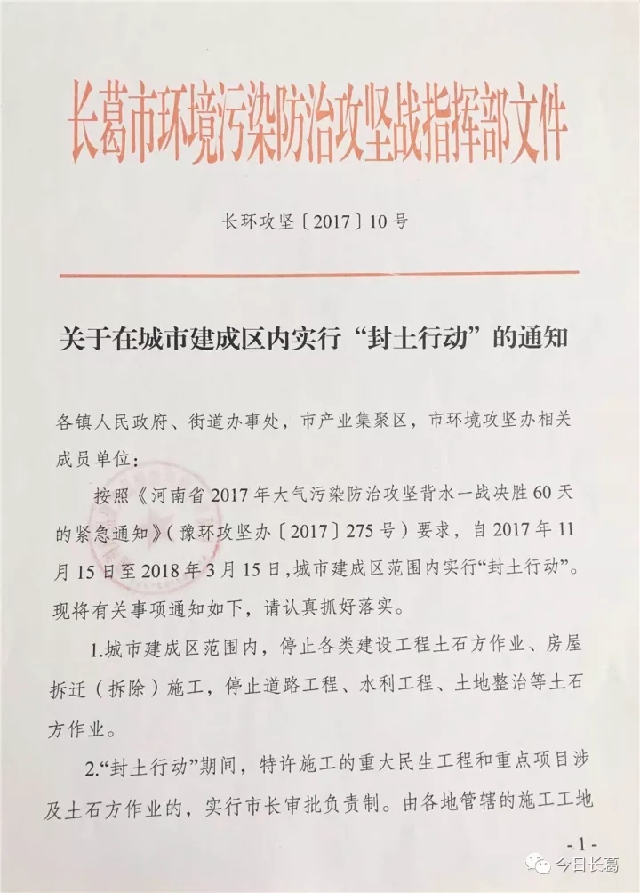 11月15日至2018年3月15日,城市建成区范围内实行“封土行动”;